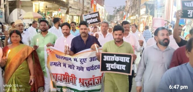 हजारीबाग : जिला कांग्रेस कमिटी के तत्वावधान पहलगाम मे हुए आतंकवादी हमले के विरोध में जिला कांग्रेस कार्यालय कृष्ण बल्लभ आश्रम से आन्नद...