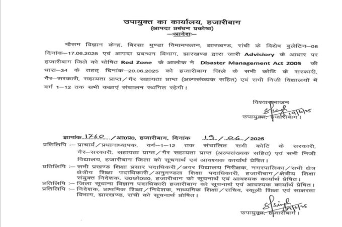 भारत मौसम विज्ञान विभाग, भारत मौसम विज्ञान केन्द्र, झारखण्ड, राँची के विशेष बुलेटिन-05 दिनांक-17.06.2025 के द्वारा झारखण्ड में दिनांक 17.06.2025 से 21.06.2025 के...