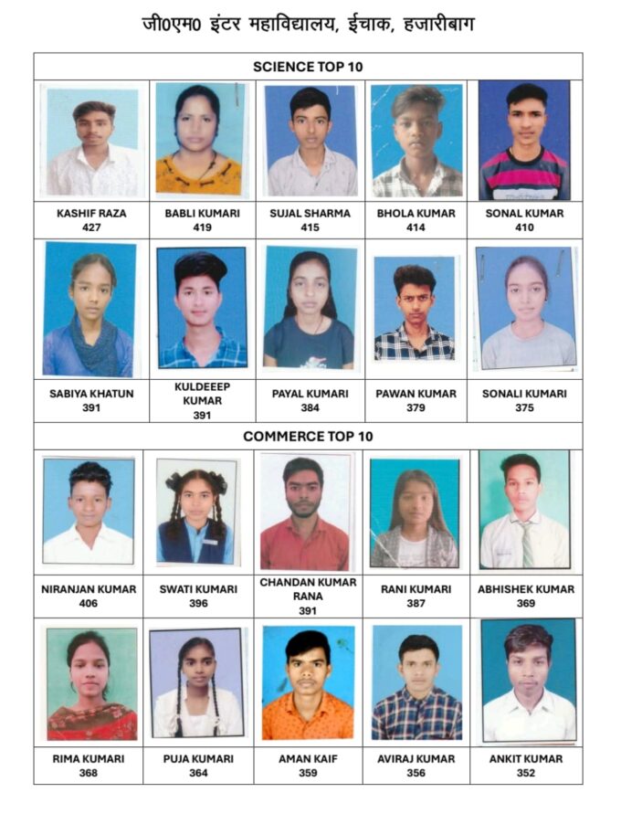 हजारीबाग।झारखंड अधिविध परिषद रांची द्वारा इंटरमीडिएट विज्ञान एवं वाणिज्य संकाय का परिणाम जारी किया गया, जिसमें जी एम इंटर महाविद्यालय, का उत्कृष्ट प्रदर्शन...