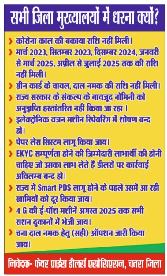फेयर प्राइस शॉप डीलर्स की मांगों को लेकर 1 अगस्त को जिला मुख्यालय में महाधरना