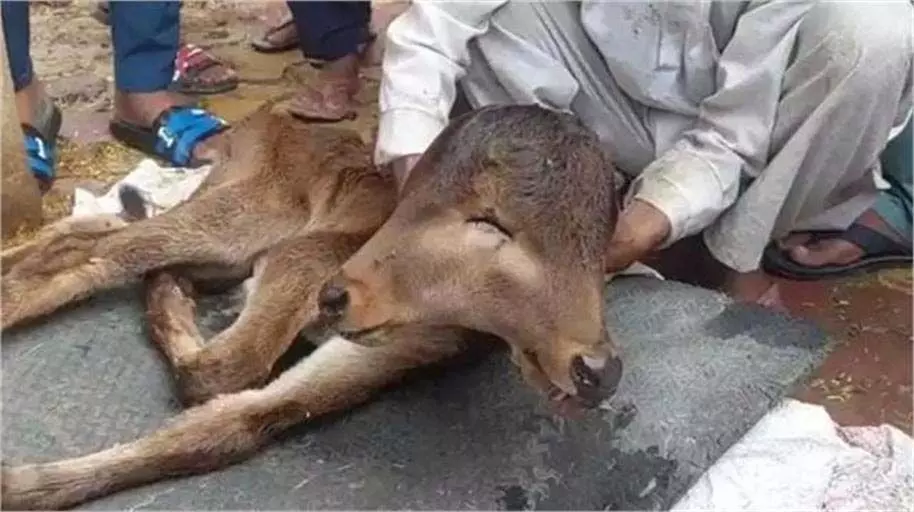 उत्तर प्रदेश : उत्तर प्रदेश के बागपत जिले के टिकरी गांव में एक बेहद अनोखी और हैरान कर देने वाली घटना सामने आई है. जहां बीते बुधवार रात एक गाय ने एक ऐसे बछड़े को जन्म दिया जिसके 2 मुंह और 3 आंखें हैं. जैसे ही यह खबर गांव और आसपास के इलाकों में फैली तो गुरुवार सुबह से ही बड़ी संख्या में लोग इसे देखने के लिए पहुंचने लगे. मिली जानकारी के मुताबिक गांव के मुस्लिम समुदाय के किसान जाहिद की गाय ने इस बछड़े को जन्म दिया है. बछड़े की बनावट देखकर लोग हैरान हैं|