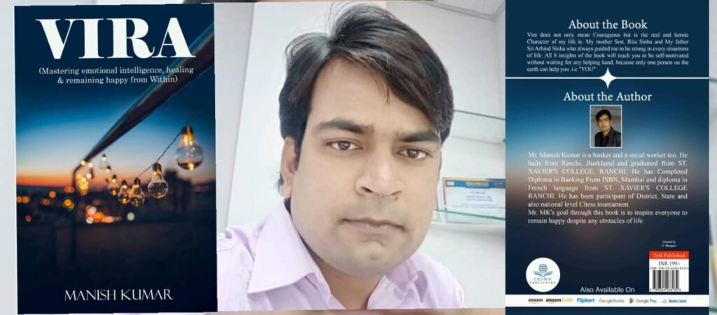 रांची के रहने वाले मनीष कुमार एक सफल बैंकर, सामाजिक कार्यकर्ता, शतरंज खिलाड़ी और अब लेखक ने अपनी नई पहचान स्थापित की है। उनकी पहली मोटिवेशनल पुस्तक “VIRA” का ऑफलाइन लोकार्पण रांची के शिव शक्ति मंदिर, हरमू प्रांगण में उनके प्रथम शिक्षक सी.पी. सोनी के हाथों हुआ।