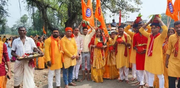 पाकुड़ जिले के हिरणपुर स्थित डाकबंगला परिसर से भव्य कलश यात्रा निकाली गई जिससे पूरा हिरणपुर क्षेत्र भक्तिमय माहौल में डूब गया। इस बार की कलश यात्रा खास रही, क्योंकि इसमें पहली बार महिला ढाकियों ने भाग लिया। पश्चिम बंगाल से आईं महिला ढाकियों की उपस्थिति ने कलश यात्रा को और भी भव्य और आकर्षक बना दिया। ढाक की गूंज और भक्तिमय ध्वनि पर श्रद्धालु झूमते नजर आए।