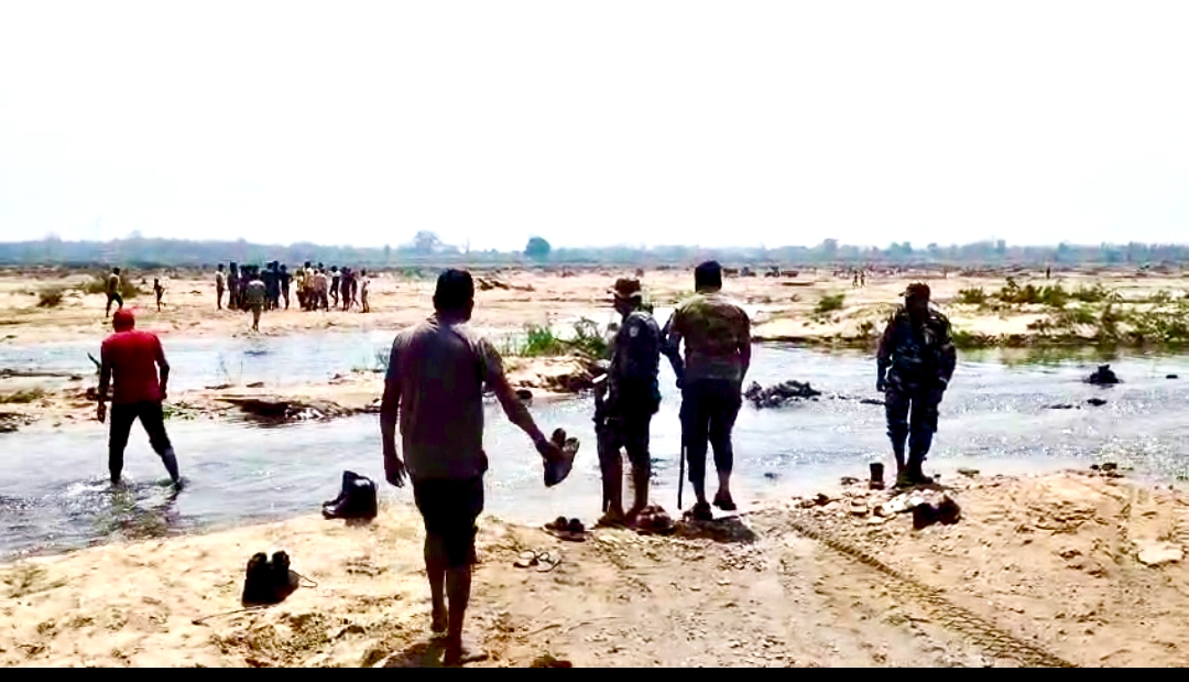 जल की उत्पन्न समस्या से नाराज़ ग्रामीणों ने बालू तस्करों को नदी से खदेड़ा।