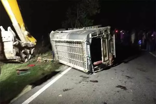 पलामू : पलामू में बीती रात भीषण सड़क हादसा हुआ है. यहां तरहसी थाना क्षेत्र के तिरुआ मोड़ पर बारातियों से भरी सवारी गाड़ी और डीजे वाहन के बीच जोरदार टक्कर हो गयी. इस हादसे में चार लोगों की मौत हो गयी. जबकि दो लोगों के पैरों में गंभीर चोटें आयी है और आठ लोग गंभीर रूप से घायल बताये जा रहे हैं. इधर हादसे की सूचना मिलते ही पुलिस मौके पर पहुंची और जेसीबी की मदद से दुर्घटनाग्रस्त गाड़ी को रास्ते से हटाया. वहीं घायलों को तुरंत इलाज के लिए अस्पताल भेजा, जहां उनका इलाज चल रहा है. वहीं पुलिस से शवों को कब्जे में लेकर पोस्टमार्टम के लिए भेज दिया.