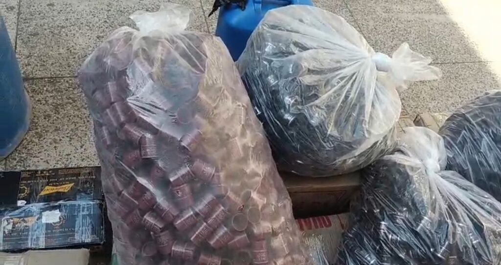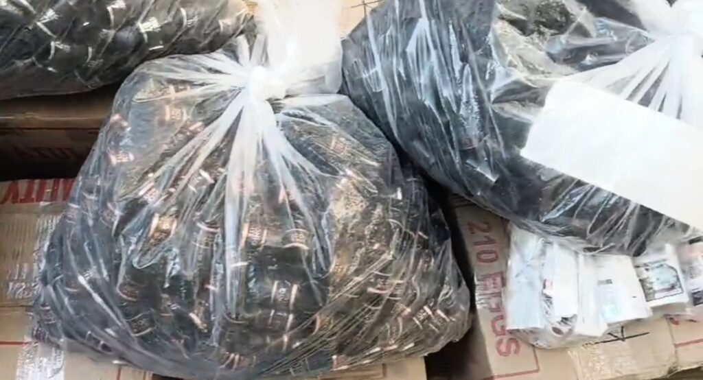 छापेमारी के दौरान विभिन्न ब्रांड की सैकड़ों बोतलें, करीब 25 लीटर स्पिरिट, बड़ी संख्या में खाली बोतलें, हजारों ढक्कन, नकली स्टीकर और शराब बनाने में उपयोग होने वाले उपकरण बरामद किए गए।