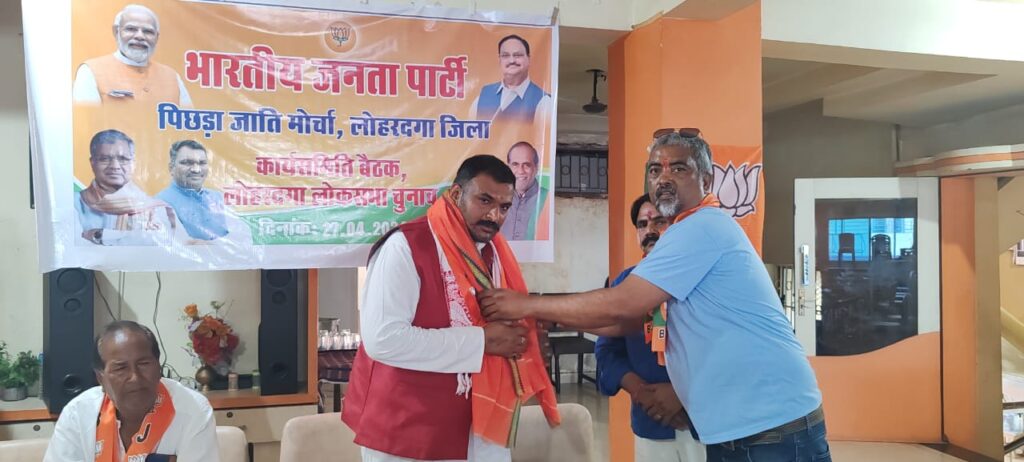 लोहरदगा लोकसभा चुनाव निमित्त भारतीय जनता पार्टी, पिछड़ा जाति मोर्चा लोहरदगा ज़िला का कार्यसमिति बैठक मोर्चा उपाध्यक्ष प्रेम प्रजापति की अध्यक्षता में सम्पन्न हुआ। जिसमे मुख्य अतिथि मोर्चा प्रदेश अध्यक्ष अमरदीप यादव, अतिथि मोर्चा के गढ़वा ज़िला प्रभारी अजय कुमार पंकज एवं वरिष्ठ कार्यकर्ता उमेश कानस्याकर जी उपस्थित रहें। जबकि पूरे बैठक में कार्यसमिति के जिला महासचिव रितेश कुमार, दुबराज वर्मा, उपाध्यक्ष प्रेम प्रजापति, रिंकू वर्मा, कोषाध्यक्ष पंकज साहू, लोहरदगा ग्रामीण अध्यक्ष पवन ठाकुर, कुडू प्रखंड नवीन कुमार चुन्नू, कैरो प्रखंड अध्यक्ष बसंत महतो, किस्को प्रखंड अध्यक्ष दिनेश साहू समेत सदस्य संजय महतो, राजेश महतो, बसंत महतो, रितिक वर्मा, विक्रांत कुमार, प्रशांत खत्री उपस्थित रहें।