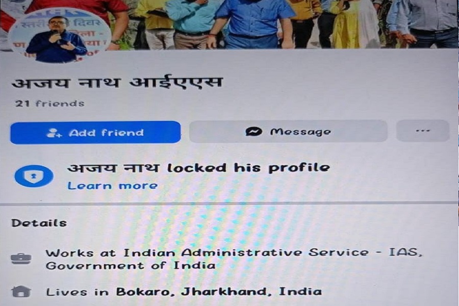 बोकारो : बोकारो डीसी अजय नाथ झा के नाम एवं प्रोफाइल फोटो का दुरुपयोग करते हुए फर्जी फेसबुक आई.डी. बनाई गई है, जिसके माध्यम से दूसरों को फ्रेंड रिक्वेस्ट भेजा जा रहा हैं। यह साइबर फ्रॉड का मामला है।