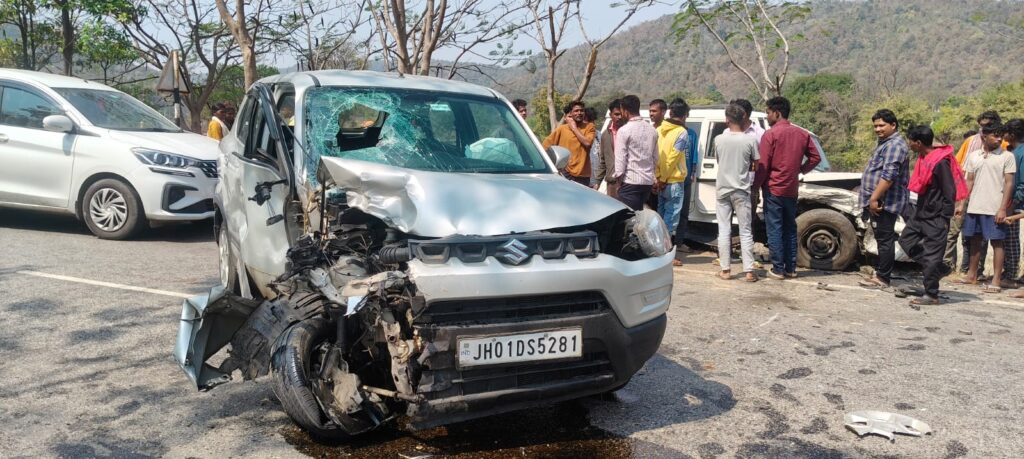 पतरातू थाना क्षेत्र अंतर्गत तालाटांड पंचायत क्षेत्र के बेती मोड़ के समीप बोलेरो और कार में सीधी टक्कर होने से दो लोग घायल हो गए