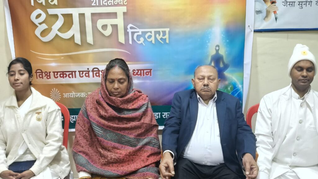 राजयोग मेडिटेशन प्रशिक्षक बीके रामदेव ने कहा कि प्रजापिता ब्रह्माकुमारी ईश्वरीय विश्व विद्यालय द्वारा इस वर्ष की थीम द्वारा लगभग 150 देशों विश्व ध्यान दिवस पर विश्व एकता एवं विश्वास पर हजारों कार्यकम आयोजित किए गए। बीके रामदेव ने कहा कि यूएन अर्थात संयुक्त राष्ट्र संघ द्वारा 21दिसम्बर 2024 को विश्व ध्यान दिवस घोषित किया गया। आज पूरे विश्व को मानवता में एकता और विश्वास की अति आवश्यकता है,इसे सहज ही हम मेडिटेशन से प्राप्त कर सकते हैं।