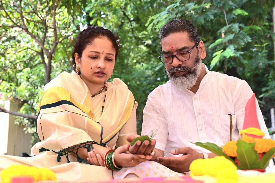 मुख्यमंत्री हेमंत सोरेन ने पत्नी कल्पना सोरेन संग नए सीएम आवास की रखी आधारशिला