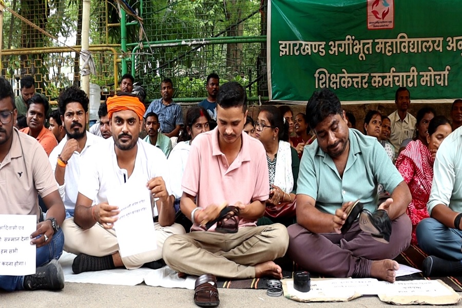 झारखंड : झारखंड के अंगीभूत महाविद्यालयों में वर्षों से कार्यरत अनुबंध शिक्षाकेतर कर्मचारी अपने समायोजन की मांग को लेकर पिछले करीब दो महीने से राज्यभवन के समीप धरने पर बैठे हैं। इनका कहना है कि उन्हें 26 मार्च 2025 से कार्य से हटा दिया गया, जिसके बाद से वे लगातार अपनी बहाली और समायोजन की मांग को लेकर सरकार और प्रशासन से गुहार लगा रहे हैं, लेकिन अब तक कोई ठोस कार्रवाई नहीं हुई है। सोमवार को अपने विरोध को अलग अंदाज़ में व्यक्त करते हुए इन कर्मचारियों ने राजभवन के निकट “बूट पॉलिश अभियान” चलाया। कभी कंप्यूटर और लैपटॉप पर ऑफिस का काम करने वाले ये कर्मचारी अब विरोधस्वरूप जूते-चप्पल पॉलिश करते दिखाई दिए। उनका कहना है कि यह प्रदर्शन सरकार को उनकी बदहाल स्थिति दिखाने का एक प्रतीकात्मक प्रयास है।
