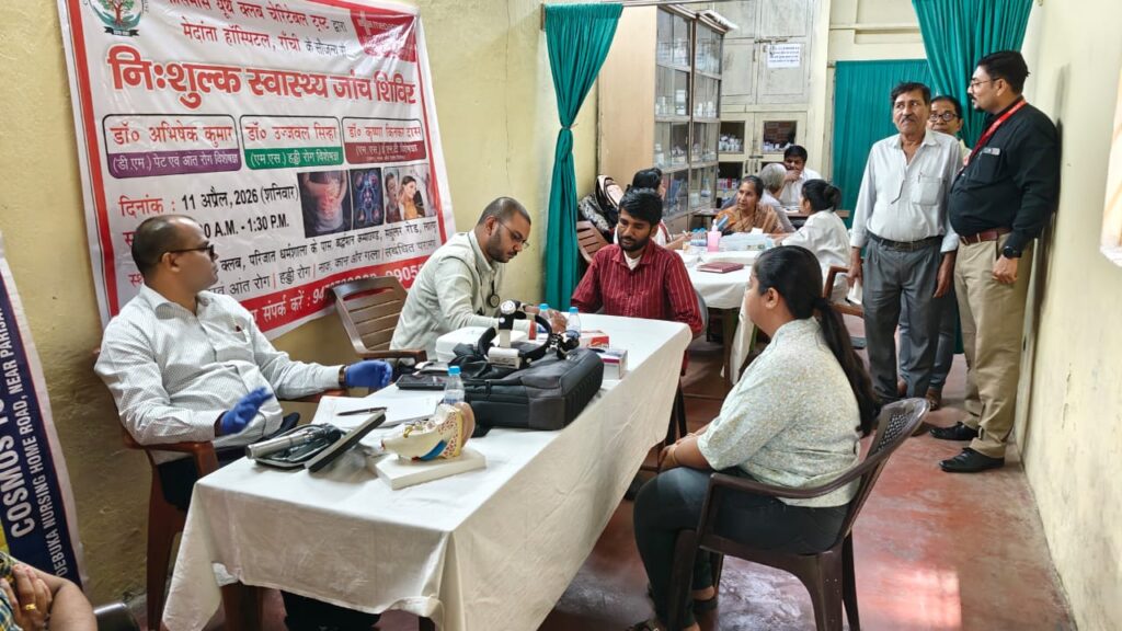 रांची। महात्मा ज्योतिराव फुले जयंती और राष्ट्रीय सुरक्षित मातृत्व दिवस के उपलक्ष्य में कॉसमॉस युथ क्लब चैरिटेबल ट्रस्ट, लालपुर, रांची द्वारा आयोजित नि:शुल्क स्वास्थ्य चिकित्सा शिविर में आए 66 से अधिक मरीजों के स्‍वास्‍थ्‍य की जांच की गई। शहर में समाज के जरूरतमंदों के लिए मेदांता हॉस्पिटल के पेट एवं आँत रोग विशेषज्ञ डॉ. अभिषेक कुमार,
