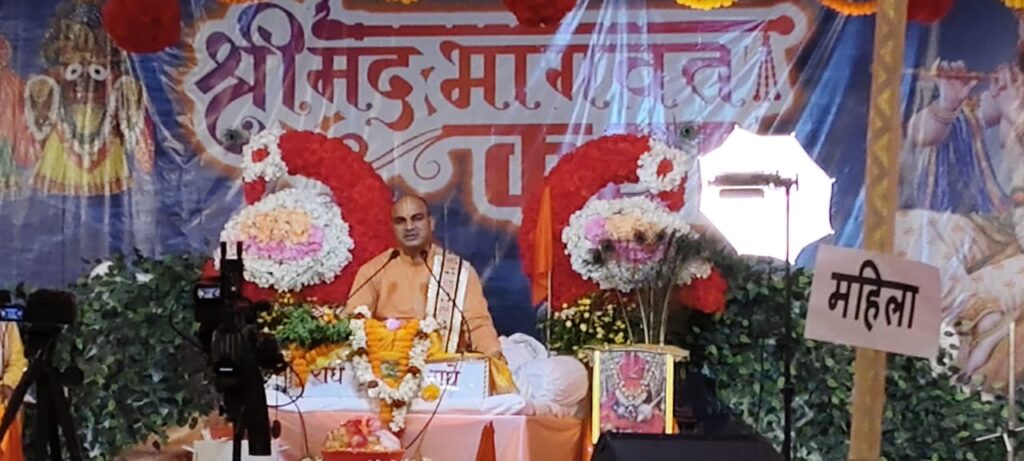 कथा प्रसंग में व्यास जी ने मनुष्य मात्र की कल्याण के लिए शास्त्रों द्वारा बताए गए आचरण भागवत सेवा ,मानव सेवा, समस्त जीव मात्र की कल्याण की अनेक को मार्ग को बताया।