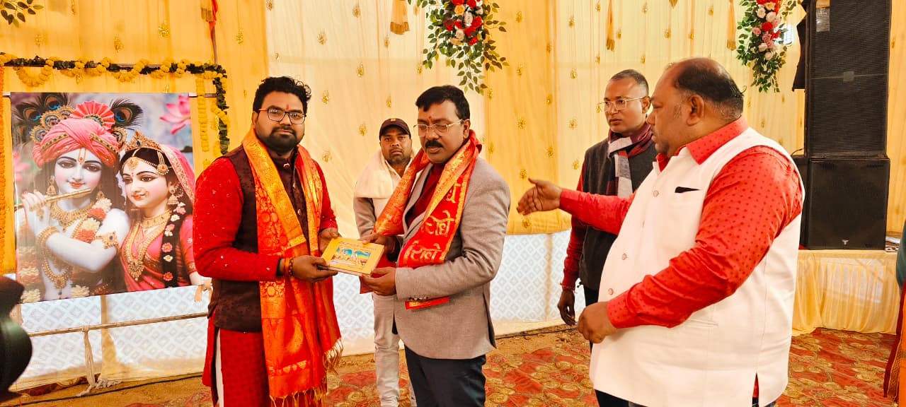 कार्यक्रम के दौरान ही बरकाकाना के पुरोहित कृष्ण कांत पाठक जी को प्रतीक वसंन और श्रीमद् भागवत गीता देकर मुख्य जजमान माननीय विधायक रोशन लाल चौधरी जी के द्वारा स्वागत सत्कार किया गया।