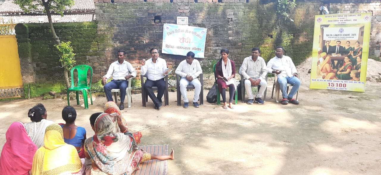 रांची : माननीय झालसा के निर्देश पर माननीय न्यायायुक्त-सह-अध्यक्ष, जिला विधिक सेवा प्राधिकार, रांची के मार्गदर्शन में, डालसा सचिव रवि कुमार भास्कर की देखरेख में विधिक जागरूकता कार्यक्रम को आगे बढ़ाते हुए आज दिनांक 08.09.2025 को बुढ़मू प्रखंड के कस्तुरबा गांधी आवासीय स्कूल एवं सिदरोल गांव में नालसा योजना साथी, डॉन, आशा, जागृति एवं संवाद पर जागरूकता कार्यक्रम का आयोजन किया गया। इस अवसर पर बुढ़मू प्रखंड में डिप्टी एलएडीसी, राजेश कुमार सिन्हा, पीएलवी काजल कुमारी, दीपक मुंडा, अनिल ठाकुर, बंधु उरांव, सादिक अली व अन्य उपस्थित थे।