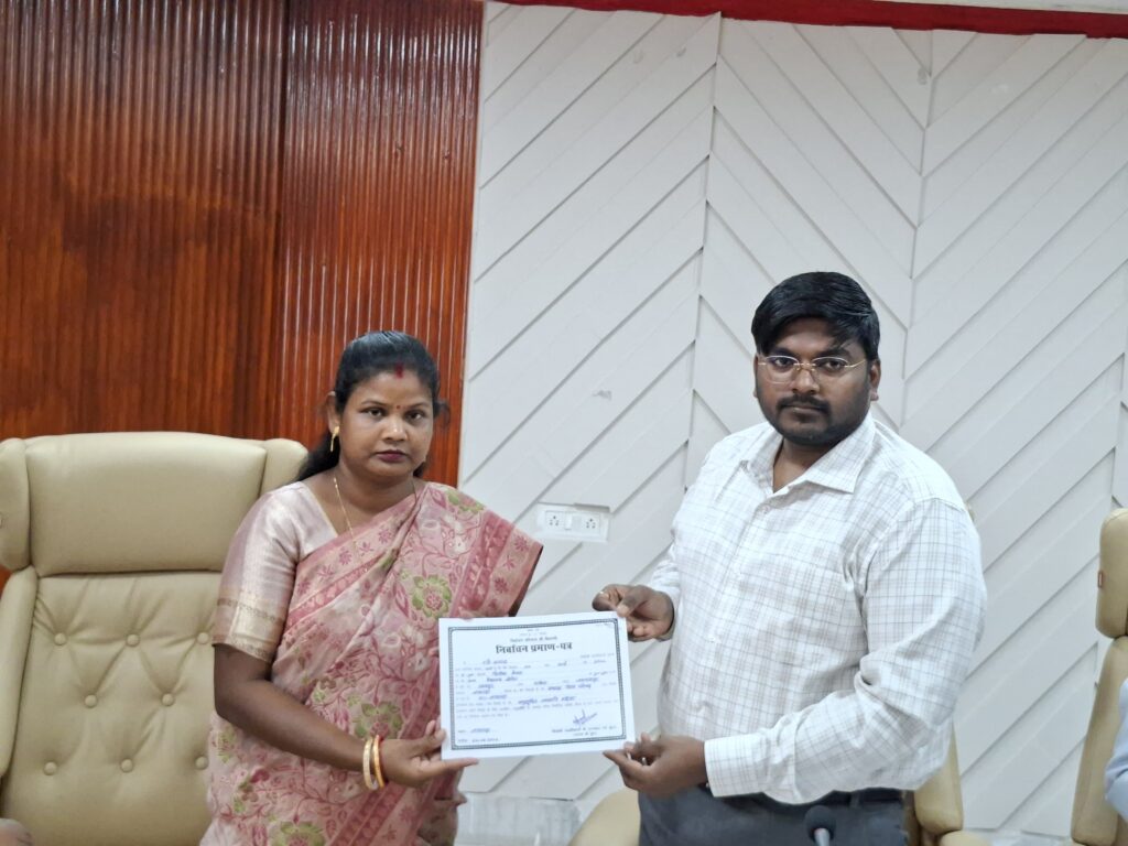 जिला परिषद अध्यक्ष पद हेतु एक अभ्यर्थी दीपिका बेसरा के द्वारा नामांकन प्रपत्र दाखिल किया गया। नामांकन प्रपत्र दाखिल करने के उपरांत संवीक्षा एवं राज्य निर्वाचन आयोग के गाइडलाइन के अनुरूप सभी प्रक्रियाओं को विधिसम्मत तरीके से पूर्ण कराया गया। जिला परिषद अध्यक्ष के पद पर श्रीमती दीपिका बेसरा को निर्विरोध निर्वाचित घोषित किया गया। उपायुक्त द्वारा नवनिर्वाचित जिला परिषद अध्यक्ष को प्रमाण पत्र सौंपा गया साथ ही उन्हें पद एवं गोपनीयता की शपथ दिलाई गई।