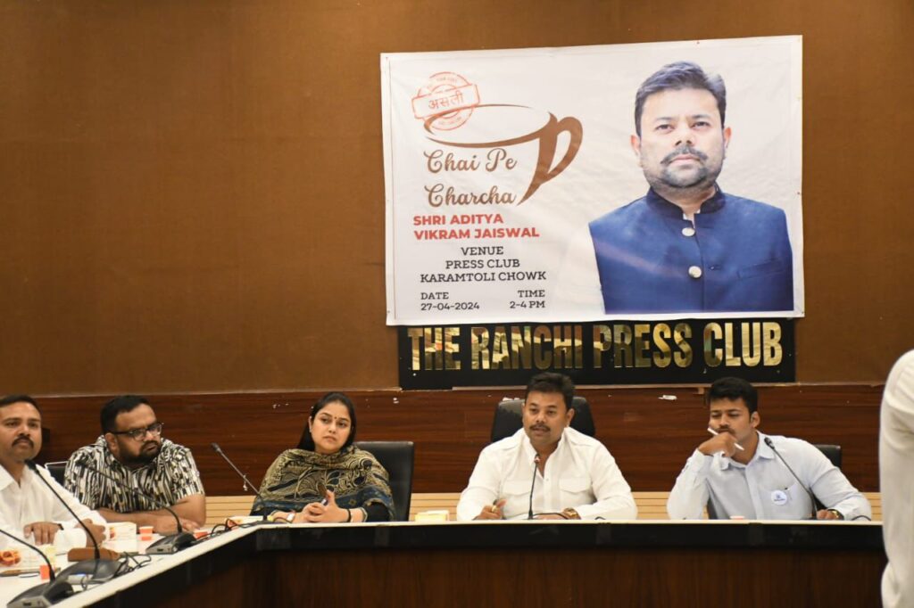 रांची। आदित्य विक्रम जयसवाल के नेतृत्व में आज दिनांक 27 अप्रैल 2024 को करमटोली चौक स्थित प्रेस क्लब, रांची में अपराह्न -02 से 04 बजे तक असली चाय पर चर्चा कार्यक्रम का आयोजन किया गया। इसमें मुख्य रूप से यूथ आइकॉन, बिजनसमैन एवं हर वर्ग के प्रबुद्धजन ने विज़न फॉर झारखण्ड पर अपनी प्रतिक्रिया प्रस्तुत किया। आदित्य विक्रम ने कांग्रेस पार्टी द्वारा लायी गई मैनिफेस्टो पर ज़ोर डालते हुए कहा कि पार्टी ने सबसे बेहतरीन मैनिफेस्टो प्रस्तुत कर हर वर्ग के लिए सोचा है एवं सभी के लिए न्याय किया है अगर हम सत्ता में आये तो ये सारे वादे धरातल पर पूरा कर देश हित में एक नया कदम बढ़ायेंगे।