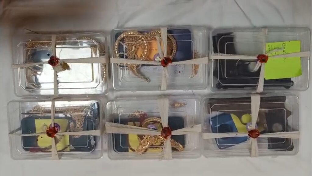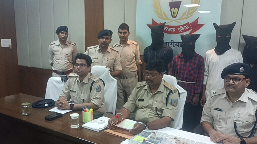 दिनांक-16.3.24 को संध्या करीब 09:00 बजे काली बाड़ी स्थित गीताजंली ज्वेलर्स में हथियार से गोली चलाते हुए लूट की घटना घटी थी। इस घटना पर पुलिस अधीक्षक हजारीबाग महोदय के द्वारा अनुसंधान और कांड के उद्भेदन हेतु श्री शिवाशीष कुमार, अनुमंडल पुलिस पदाधिकारी सदर हजारीबाग के नेतृत्व में विशेष अनुसंधान टीम (SIT) का गठन किया गया। विशेष अनुसंधान टीम के द्वारा कांड के अनुसंधान में प्राप्त साक्ष्यों का टेक्निकल विशलेषण तथा सूचना तंत्र के आधार पर कांड की पूर्ण तरीके से उद्भेदन करते हुए इस कांड में शामिल सभी पांच अपराध कर्मियो को कांड में लूटा हुआ आर्टिफिसियल जेवर तथा घटना में प्रयुक्त हथियार (दो ऑटोमेटि पिस्तौल, गोली के साथ) तथा घटना में उपयोग में लाई गई दो मोटरसाईकिल (जो माह फरवरी में बड़कागांव थान क्षेत्र से चोरी किया गया है को बरामद कर लिया गया है। गिरफ्तार सभी अपराधकर्मियों को बरामद जप्त सामानों के साथ न्यायिक अभिरक्षा में भेजा जा रहा है।01. गिरफ्तार अपराधिकर्मियों का नाम :-(i) डेविड मिंज पे०-दानियल मिंज सा०- मांडेर टोला मंदाली टांड थाना टंडवा जिला चतरा। (ii) अविनाश कुमार, पे०-कोलेश्वर राम सा० बानादाग थाना कटकमदाग जिला हजारीबाग। (iii) विद्या कुमार उर्फ बेदिया, पे० दिपु प्रसाद सा० बांका थाना कटकमदाग जिला हजारीबाग। (iv) पंकज कुमार, पे० बिरजु महतो सा० बांका थाना कटकमदाग जिला हजारीबाग। (v) विक्रम कुमार, पे० कोलेश्वर साव सा० थाना-कटकमदाग जिला हजारीबाग।02. जप्त सामनों का विवरणी :-(i) डेविड मिंज के पास से गोल्डेल पालिस किया हुआ आर्टिफिसियल जेवर (क) सीता हार, (ख) दो कंगन, (ग) गले का पतला चेन-01, (घ) बिना नम्बर का बाईक जोबड़कागांव में चोरी किया है। (ड०) लूटा हुआ मोबाईलii) अविनाश कुमार के पास से 01. पिस्तौल-01, मैगजीन लगा हुआ। गोली-02 (एक चेम्बर ( में और एक बेड क निचे), 02. गोल्डेल पालिस किया हुआ आर्टिफिसियल जेवर (क) सीता हार, (ख) दो कान का जेवर, (ग) कंगन 03. निजी मोबाईल(iii) विद्या कुमार उर्फ बेदिया के पास से गोल्डेल पालिस किया हुआ आर्टिफिसियल जेवर (क) सीता हार, (ख) दो कंगन दो कंगन कुल चार कंगन, (ग) एक चेन (घ) एक चक्र गोली KF.32(iv) पंकज कुमार के पास से गोल्डेल पालिस किया हुआ आर्टिफिसियल जेवर (क) सीता हार, (ख) कान का जेवर दो पीस, (ग) उपयोग किया हुआ एन०एस० बाईक का चाभी (घ) एक मोबाईल(v) विक्रम कुमार के पास से अपराध में शामिल बाइक, 2. एक देशी पिस्तौल एक गोली मैगजीन में। 03.गिरफ्तार अपराधियों का अपराधिक इतिहास :-(i) डेविड मिंज पे०-दानियल मिंज सा०- मांडेर टोला मंदाली टांड थाना टंडवा जिला चतरा।(ii) अविनाश कुमार, पे०-कोलेश्वर राम सा० बानादाग थाना कटकमदाग जिला हजारीबाग। (iii) विद्या कुमार उर्फ बेदिया, पे० दिपु प्रसाद सा० बांका थाना कटकमदाग जिला हजारीबाग।(iv) पंकज कुमार, पे० बिरजु महतो सा