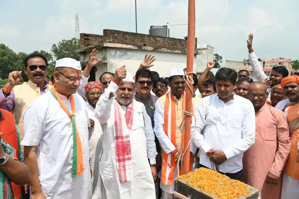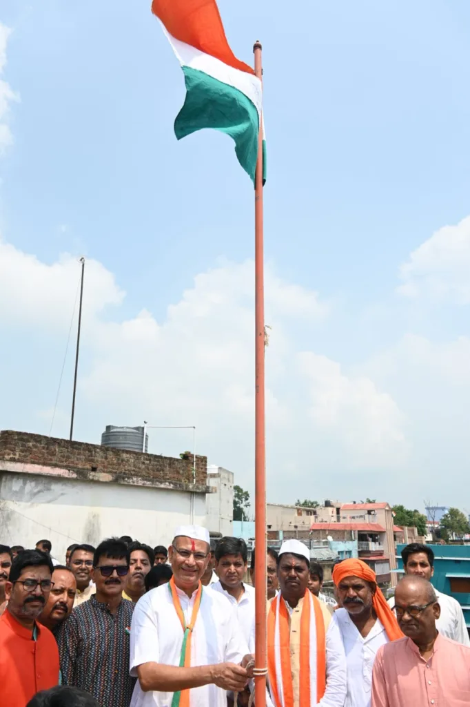 हजारीबाग के लोकप्रिय सांसद सह अध्यक्ष वित्त संबंधी संसदीय स्थायी समिति श्री जयंत सिन्हा जी के कर कमल के द्वारा आजादी के 77 में स्वतंत्रता दिवस के अमृत काल के पावन अवसर पर स्थानीय जिला भाजपा कार्यालय अटल सेवा केंद्र में बड़े ही धूमधाम से राष्ट्रीय झण्डा फहराया गया। साथ ही उपस्थित कार्यकर्ताओं ने एक दूसरे को मिठाई खिला कर बधाई दिया।