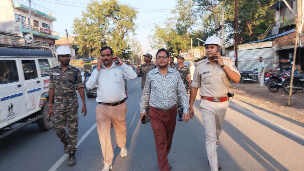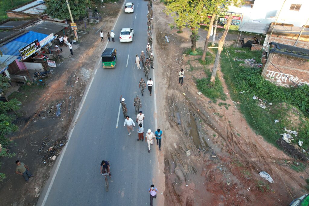 हजारीबाग: आगामी दुर्गा पूजा को लेकर दारू थाना क्षेत्र में सुरक्षा व्यवस्था को चाक-चौबंद करने हेतु रविवार को पुलिस-प्रशासन की ओर से भव्य फ्लैग मार्च निकाला गया। इस फ्लैग मार्च का नेतृत्व हजारीबाग पुलिस निरीक्षक जलाल मुंडा (दारू अंचल), अंचल अधिकारी और प्रखंड विकास पदाधिकारी ने संयुक्त रूप से किया।
