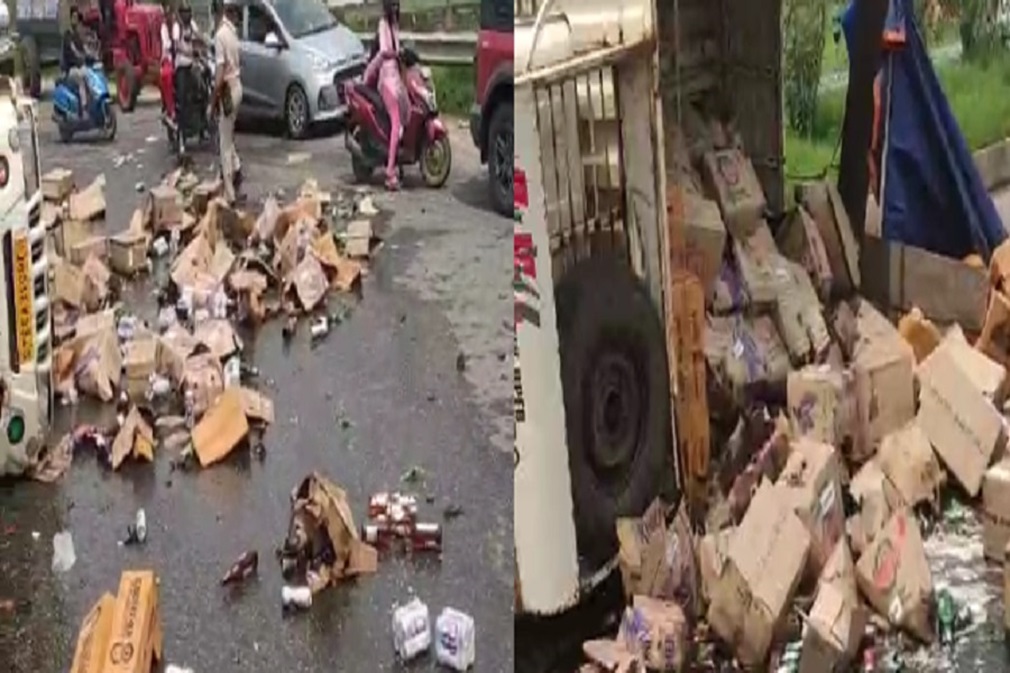 रांची : राजधानी रांची के कांके थाना क्षेत्र स्थित रिंग रोड में उस समय अफरा-तफरी मच गई जब विदेशी शराब से लदा एक वाहन पलट गया। वाहन के पलटते ही उसमें लदी शराब की बोतलें और पेटियां सड़क पर बिखर गईं। घटना के बाद मौके पर भारी संख्या में लोग जुट गए और शराब लूटने की होड़ मच गई। इस दौरान कई बोतलें टूट गईं, जिससे सड़क पर शराब फैल गई। घटना की सूचना मिलते ही पुलिस मौके पर पहुंची, जिसके बाद वहां मौजूद लोग मौके से भाग गए।