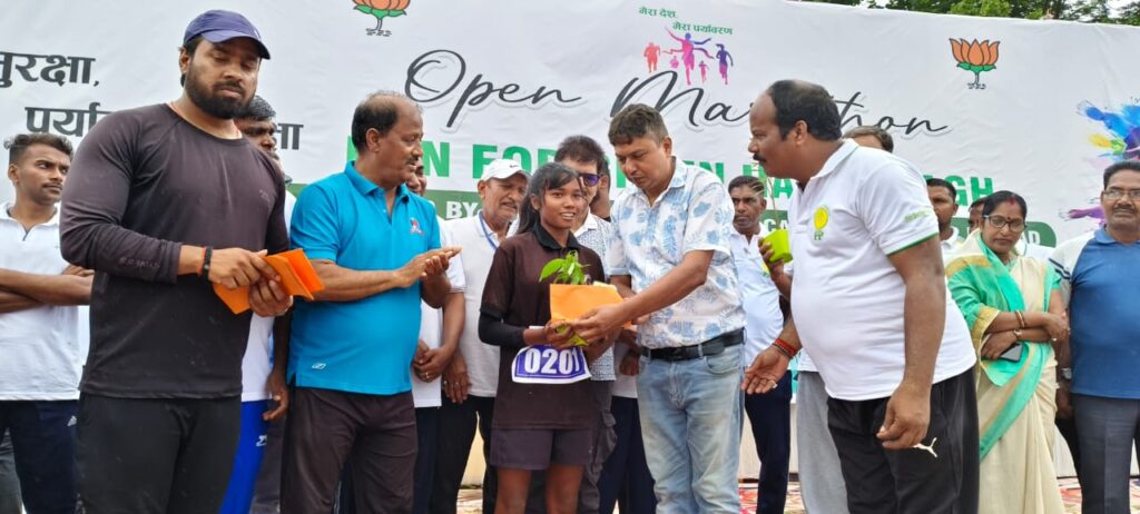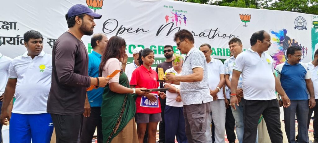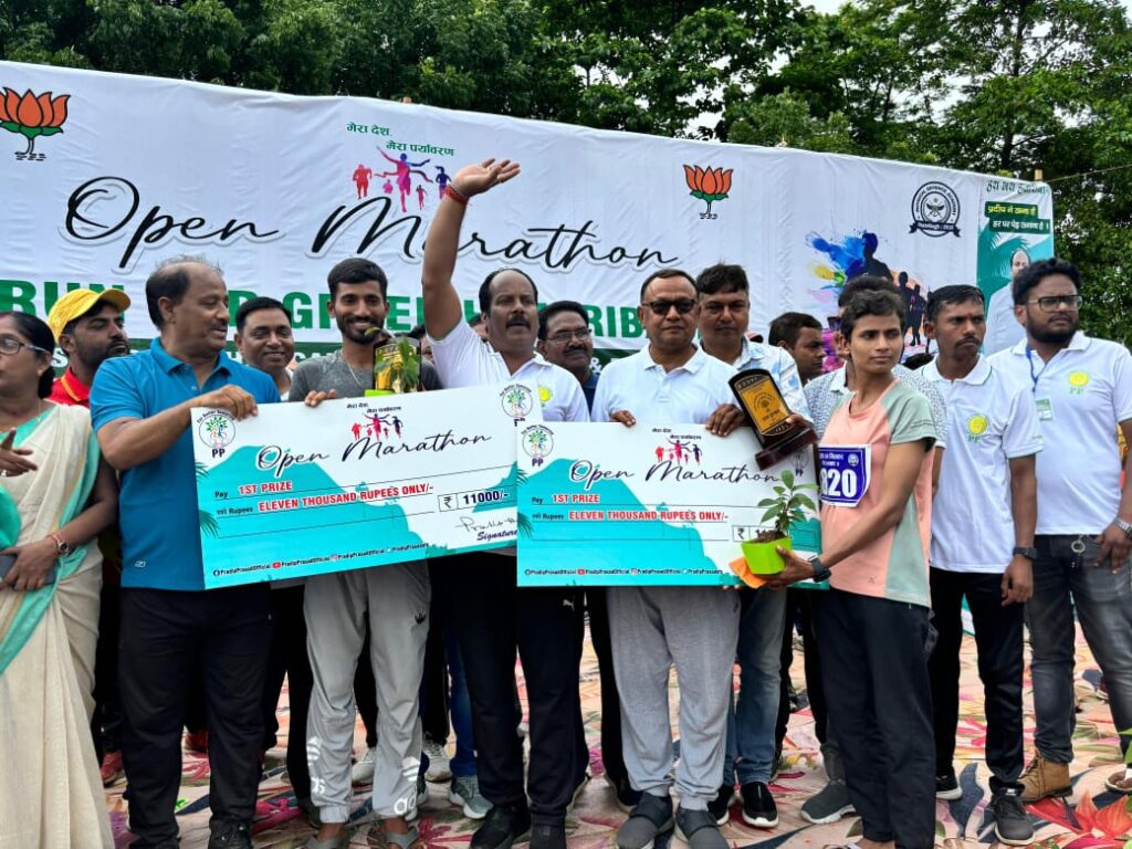 मौके पर प्रदीप प्रसाद ने कहा कि पर्यावरण संरक्षण न केवल हमारी वर्तमान पीढ़ी के लिए, बल्कि आने वाली पीढ़ियों के लिए भी आवश्यक है। इसी दृष्टिकोण से यह भव्य मैराथन दौड़ का आयोजन किया गया। इस प्रकार की गतिविधियों को लोगों में जागरूकता फैलाने का एक महत्वपूर्ण माध्यम है, हमारी सभी से अपील की वे पर्यावरण की सुरक्षा के लिए अपने स्तर पर प्रयास अवश्य करें। उन्होंने बताया कि इस प्रकार के आयोजन से न केवल स्वास्थ्य को बढ़ावा मिलता है, बल्कि पर्यावरण की सुरक्षा का बेहतर संदेश भी फैलता है। साथ ही कहा कि 5 जून से प्रारंभ हरियाली महोत्सव के मुहिम के दौरान 75 हजार पौधे का वितरण तथा पौधारोपण किया जा चुका है,आने वाले वर्षों में पांच लाख पेड़ के मुहिम के साथ कार्य किया जाएगा। पौधे के लिए बेहतर बीज की भी उत्तम व्यवस्था की जाएगी इस भव्य आयोजन में शामिल समस्त धावकों एवं गणमान्य लोगों का हृदय से आभार, जिनके सहयोग से कार्यक्रम सफलतापूर्वक संपन्न हुआ विशेष रूप से फिजिकल डिफेंस एकेडमी एवं जिले के समस्त खेल प्रेमियों का जिन्होंने शुरुआत से अंतिम तक अपना साथ और सहयोग के बदौलत कार्यक्रम को ऐतिहासिक बनाया है साथ ही पत्रकार बंधुओ का भी धन्यवाद जिन्होंने इस भव्य कार्यक्रम के कवरेज के लिए अपनी भूमिका अदा किए हैं। विशेष रूप से सम्मानित हुए सभी धावकों को बहुत-बहुत बधाई एवं अनंत शुभकामनाएं आने वाले दिनों में जिले को नशा मुक्ति करने की दृष्टिकोण से एक भव्य कार्यक्रम का आयोजन किया जाएगा जिसमें देश के प्रसिद्ध अभिनेता को आमंत्रित किया जाएगा जिसमें आप सभी की सहभागिता कार्यक्रम की सफलता की ओर अग्रेषित होगी।