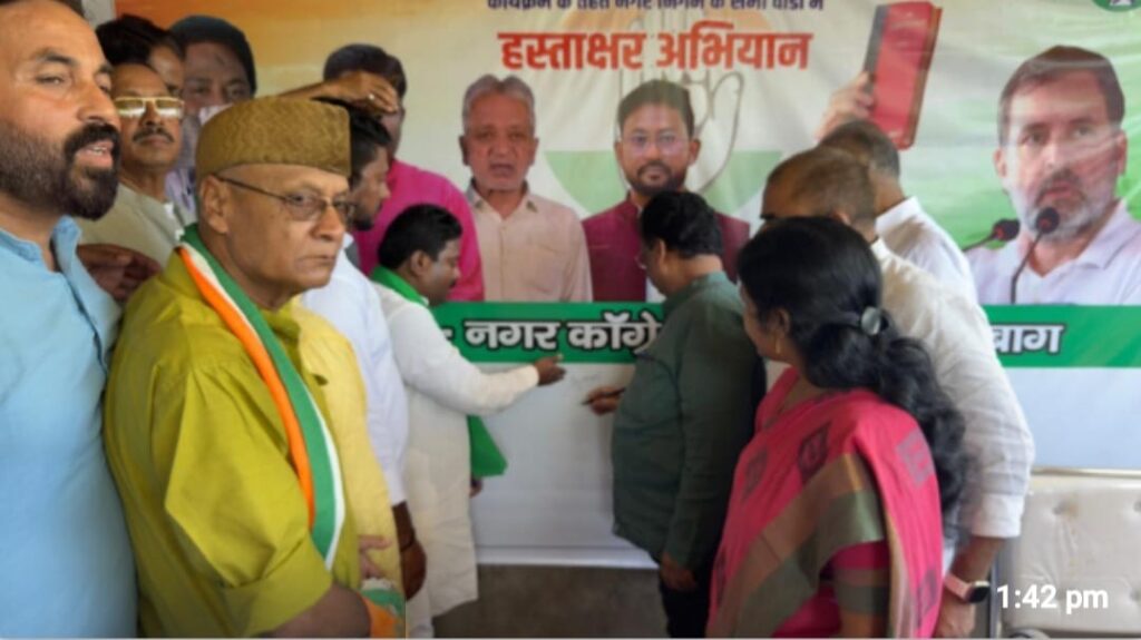 हजारीबाग : भाजपा द्वारा संवैधानिक मुल्यों की हत्या और चुनाव आयोग की मिलीभगत से जनमत को कुचलने के विरोध में हजारीबाग नगर कांग्रेस की ओर से मंडई कला वार्ड नम्बर एक और दो में वोट चोर गद्दी छोड़ हस्ताक्षर अभियान का शुभारंभ किया गया । कार्यक्रम की अध्यक्षता नगर अध्यक्ष परवेज अहमद ने की । इस अवसर पर मुख्य अतिथि राष्ट्रीय कांग्रेस के सचिव व झारखंड सह प्रभारी सिरिवेला प्रसाद ने कहा कि जिस प्रकार से हमारे प्रतिपक्ष के नेता राहुल गांधी ने तमाम तथ्यों और सबूतों के साथ वोट चोरी का उजागर किया है , अब आवश्यकता है कि इन तथ्यों को हम जन-जन तक पहुंचाए ताकि लोकतंत्र की रक्षा की जा सके । उन्होंने पत्रकारों के नवनियुक्त जिला अध्यक्ष के नियुक्ति पर सवाल पुछे जाने पर जवाब देते हुए कहा कि एआईसीसी के द्वारा बनाए गए जिला के सभी अध्यक्ष सर्वमान्य हैं , यदि कोई इसका विरोध करता है तो उस पर शीर्ष नेतृत्व द्वारा आनुशासनात्मक कारवाई की जाएगी । जिला के प्रभारी सह पूर्व मंत्री जलेश्वर महतो ने कहा कि केन्द्र की भाजपा सरकार लोकतंत्र की हत्या का प्रयास विभिन्न माध्यमों से कर रही है, और चुनाव आयोग भी सरकार की कटपुतली बन गया है । वोट चोरी को रोकना और देश को टुटने से बचाना हम सभी कांग्रेसियों का कर्तव्य है । विशिष्ट अतिथि जिला अध्यक्ष जय प्रकाश भाई पटेल व सदर विधान सभा के पूर्व प्रत्याशी सह नगर निगम पर्यवेक्षक मुन्ना सिंह नगर पर्यवेक्षक दिगम्बर मेहता ओबीसी के प्रदेश सचिव रेणू कुमारी ने अपने-अपने विचार व्यक्त किए । कार्यक्रम का संचालन जिला महासचिव जावेद इकबाल जबकी धन्यवाद ज्ञापन जिला उपाध्यक्ष डाॅ. निजामुद्दीन अंसारी ने किया । मौके पर जिला मीडिया अध्यक्ष निसार खान स्थानीय वार्ड पार्षद राजा बाबु, राजू चौरसिया, कृष्णदेव प्रसाद सिंह, कोमल कुमारी, अनिल कुमार उपाध्याय, सलीम रजा, दिलीप कुमार रवि, बाबर अंसारी, बाबर अंसारी, निसार अहमद भोला, तसलीम अंसारी, रविन्द्र प्रताप सिंह, मोहम्मद रब्बानी, माशूक अंसारी, रिंकु कुमार, दीपक गुप्ता, मोहम्मद शब्बीर, पंचम पासवान, अनिल कुमार भुईंया, मुस्ताक अंसारी, संगीता कशवाहा, बब्लू अंसारी, मोहम्मद सिराजुद्दीन, दिनेश कुमार मेहता, मोहम्मद रज्जब, अजय कुमार यादव, कलीम अंसारी, अमीत सिन्हा, मोहम्मद सलीम, नागेश्वर राम, मोहम्मद चांद, बंगाली राम, मोहम्मद शहाबुद्दीन, संजय सिंह, राॅकी, नारायण पासवान, आदिल रसीद, बालेश्वर महतो, मोहम्मद मुजिब, जय कुमार मेहता, मोहम्मद महमूद, गिरजा शंकर, मीर शाद, गोपाल यादव, मोहम्मद शाहनवाज, प्रकाश पासवान, शमशाद आलम, शिव नंदन साहू के अतिरिक्त सैकड़ो कांग्रेसी उपस्थित थे ।