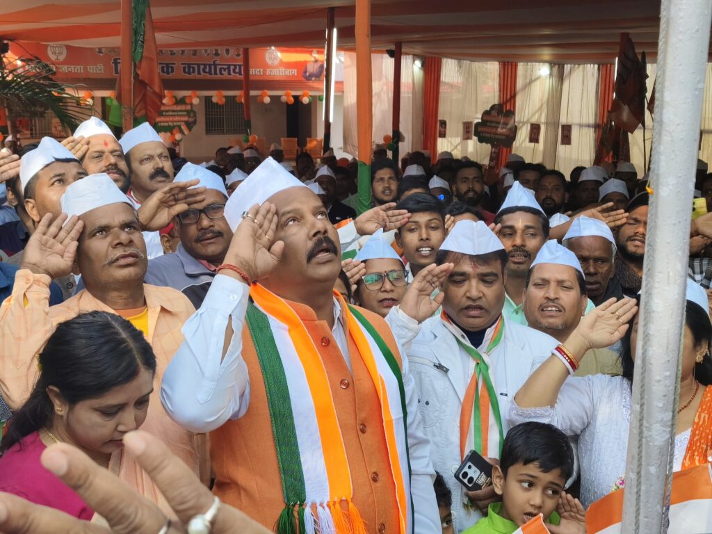 76वें गणतंत्र दिवस के पावन अवसर पर हजारीबाग सदर विधायक प्रदीप प्रसाद ने अपने सेवा कार्यालय परिसर में राष्ट्रीय ध्वज फहराया। इस गौरवशाली क्षण में भारतीय जनता पार्टी के सैकड़ों कार्यकर्ताओं, समर्थकों, और युवाओं ने बढ़-चढ़कर हिस्सा लिया। समारोह का आयोजन देशभक्ति और उत्साह के माहौल में हुआ, जहां क्षेत्रवासियों ने भारी संख्या में उपस्थित होकर गणतंत्र दिवस की गरिमा को और अधिक बढ़ा दिया।