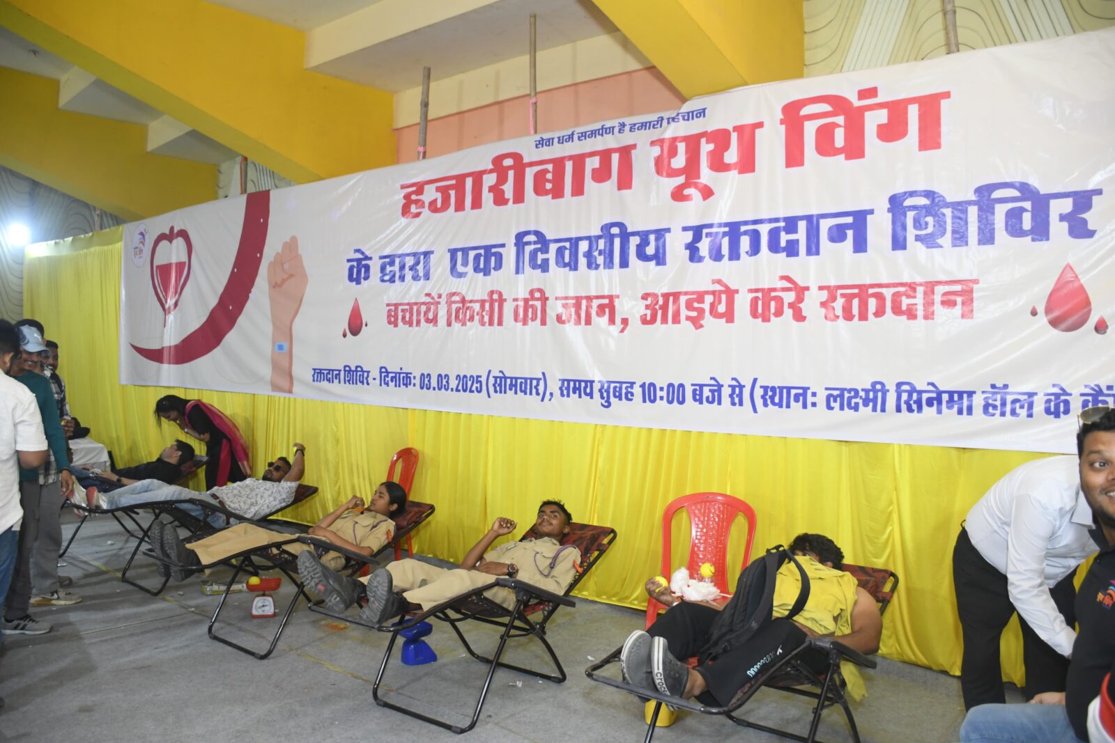 सेवा, समर्पण और समाज कल्याण की मिसाल पेश करते हुए हजारीबाग यूथ विंग द्वारा आयोजित रक्तदान शिविर में एक नया इतिहास रचा गया। इस शिविर में कुल 221 यूनिट रक्त संग्रह कर जिले का अब तक का सबसे बड़ा रिकॉर्ड बनाया गया। यह आयोजन जिले में रक्तदान के प्रति जागरूकता और मानवता की भावना को सशक्त बनाने की दिशा में एक महत्वपूर्ण कदम साबित हुआ। यह विशाल रक्तदान शिविर सोमवार को लक्ष्मी सिनेमा हॉल के सभागार में आयोजित किया गया, जो सुबह 10:00 बजे से शाम 5:30 बजे तक चला। इस दौरान बड़ी संख्या में युवाओं, सामाजिक कार्यकर्ताओं, महिलाएं,छात्रों और गणमान्य नागरिकों ने बढ़-चढ़कर हिस्सा लिया और रक्तदान के पवित्र कार्य में अपना योगदान दिया।