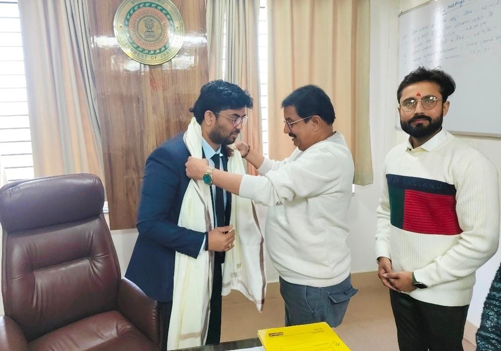 जिले में सामाजिक एवं धार्मिक सेवा के क्षेत्र में बीते साढ़े चार वर्षों से सक्रिय हजारीबाग यूथ विंग के पदाधिकारियों एवं सदस्यों ने शनिवार को नवनियुक्त सदर अनुमंडल पदाधिकारी आदित्य पांडे से शिष्टाचार भेंट की। इस दौरान संस्था की ओर से उन्हें फूलों का गुलदस्ता एवं अंगवस्त्र भेंट कर सम्मानित करते हुए हजारीबाग में स्वागत किया गया शिष्टाचार मुलाकात के क्रम में हजारीबाग यूथ विंग द्वारा किए जा रहे विभिन्न सेवा कार्यों की जानकारी विस्तारपूर्वक साझा की गई। बताया गया कि वर्तमान में शीतकालीन राहत अभियान चलाया जा रहा है, जिसके अंतर्गत प्रत्येक सप्ताह जरूरतमंदों के बीच कंबल वितरण किया जा रहा है। इसके साथ ही संस्था धार्मिक आयोजनों, सामाजिक कार्यक्रमों तथा मानवीय सेवा कार्यों में निरंतर सहभागिता निभा रही है। मुलाकात के दौरान रक्तदान को लेकर संस्था की सक्रिय भूमिका पर भी चर्चा हुई। बताया गया कि वर्ष 2025 में हजारीबाग यूथ विंग द्वारा विशाल रक्तदान शिविर का सफल आयोजन किया गया था। आने वाले समय में भी संस्था द्वारा और भी भव्य रक्तदान शिविर आयोजित किए जाएंगे। इसके अलावा गौशाला में सेवा कार्यों सहित अन्य सामाजिक गतिविधियों में भी संस्था लगातार योगदान दे रही है। सभी बातों को ध्यानपूर्वक सुनने के बाद नवनियुक्त सदर अनुमंडल पदाधिकारी आदित्य पांडे ने हजारीबाग यूथ विंग के कार्यों की सराहना करते हुए कहा कि संस्था द्वारा किया जा रहा सेवा कार्य अत्यंत प्रशंसनीय है। भविष्य में जब भी प्रशासन को समाजसेवी संगठनों के सहयोग की आवश्यकता होगी, हजारीबाग यूथ विंग से निश्चित रूप से संपर्क किया जाएगा।