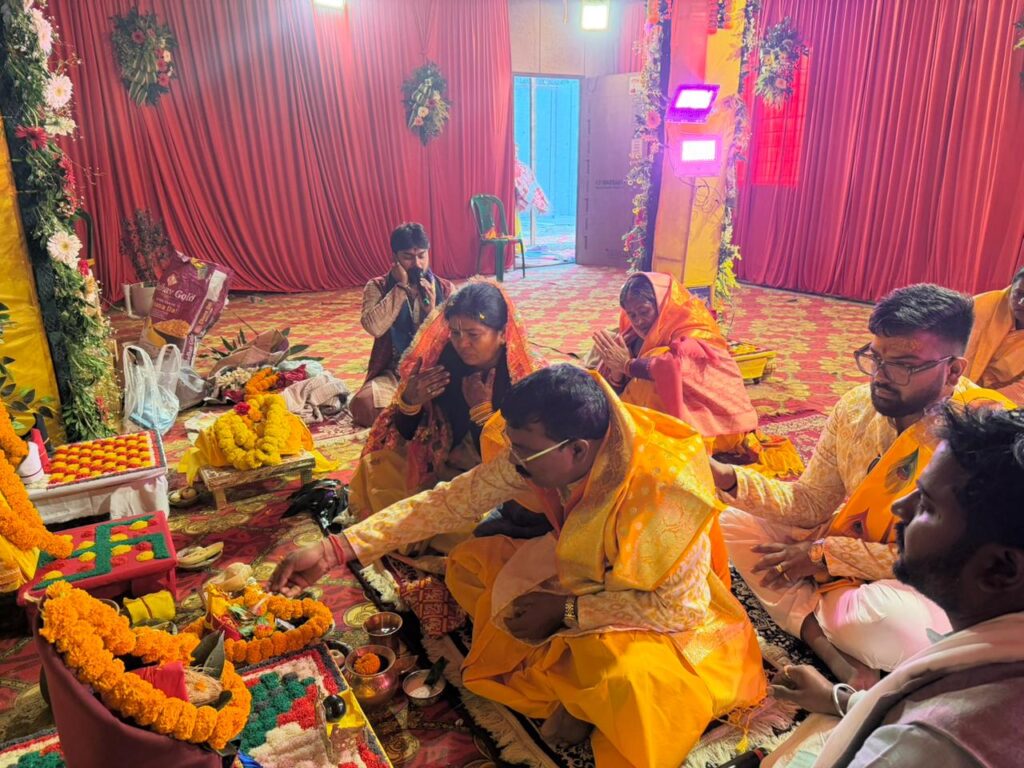 मंच का संचालन श्री रामा प्रजापति के द्वारा किया गया।यज्ञ स्थल पहुंचने पर झांकी के कलाकारों के द्वारा मनमोहक राधा कृष्ण की झांकी प्रस्तुत की गई। जिसमें उपस्थित श्रद्धालु भक्तों को अपनी ओर आकर्षित कर लिया। श्रृद्धालु भक्ति भाव से झूम उठे।