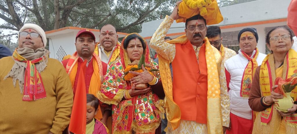 भाजपा विधायक बड़कागांव विधानसभा श्री रोशन लाल चौधरी एवं धर्मपत्नी श्रीमती डा रेखा चौधरी जी सहित क्षेत्र के तमाम सैकड़ों श्रद्धालु के संग बैंड बाजे के साथ श्री मद भागवत कथा साप्ताहिक स्थल पूर्व निर्धारित कार्यक्रम के अनुसार स्थानीय पंच मंदिर प्रांगण से श्री मद भागवत आसन पूजन कर सैकड़ों कलश पूजन सह शोभायात्रा जो कटिया पंचमंदिर प्रांगण से निकल कर हनुमानगढ़ी पंचायत होते हुए मुख्य मार्ग मेन रोड पतरातु से होते हुए पुनः श्री मद भागवत कथा स्थल पर पूर्ण की गई।