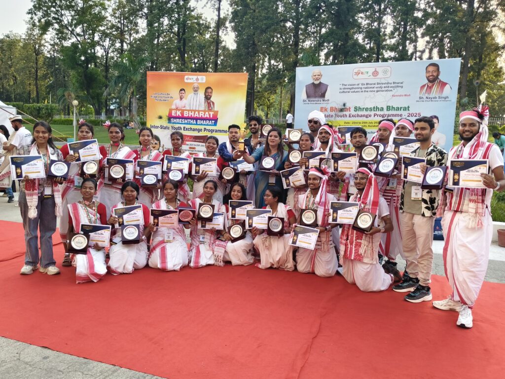 रांची । हरियाणा के कुरुक्षेत्र में अंतर्राज्यीय युवा विनिमय कार्यक्रम (२३ से २६ जुलाई) में पूरे देश के २८ राज्यों तथा केंद्र शासित राज्यों से कुल ९०० प्रतिभागियों के साथ आयोजित समारोह उत्साह एवम उल्लास के साथ सम्पन्न हो गया।