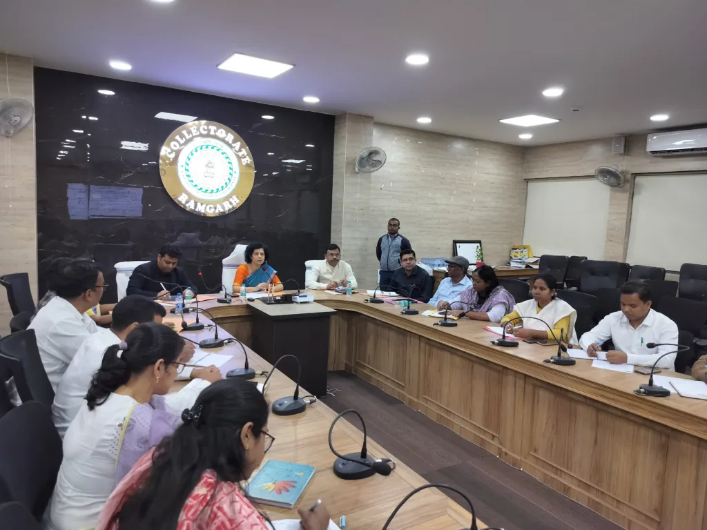 बैठक के दौरान श्रीमती पटनायक के द्वारा केंद्र सरकार की पहल “विकसित भारत संकल्प यात्रा” को लेकर जानकारी देने के क्रम में बताया कि समाज के आखिरी व्यक्ति तक सरकार की योजनाओं का लाभ एवं कई महत्वपूर्ण जानकारियां पहुंचाने के उद्देश्य से केंद्र सरकार द्वारा अनुसूचित जनजाति बहुल जिलों में 15 नवंबर एवं अन्य जिलों में 22 नवंबर से विकसित भारत संकल्प यात्रा के तहत जागरूकता वाहन को रवाना किया जाएगा। जागरूकता वाहन के माध्यम से सरकार की प्रमुख 17 योजनाओं प्रधानमंत्री आयुष्मान भारत योजना, प्रधानमंत्री उज्ज्वला योजना, किसान सम्मान निधि योजना, केसीसी, पोषण अभियान, जनधन योजना, सुरक्षा बीमा योजना, जल जीवन मिशन आदि योजनाओं की जानकारी दी जाएगी। जागरूकता वाहन का प्रमुख उद्देश्य समाज के आखिरी व्यक्ति तक पहुंचाना, उनके बीच सरकार की योजनाओं को लेकर जागरूकता फैलाना, लोगों से सरकार की योजनाओं को लेकर उन्हें मिल रहे लाभ से संबंधित फीडबैक लेना तथा उनके क्षेत्र में ही लोगों को सरकार की योजनाओं से लाभान्वित करना है। इस दौरान श्रीमती पटनायक में रामगढ़ जिले में भी विकसित भारत संकल्प यात्रा के सफल संचालन को लेकर कई आवश्यक दिशा निर्देश दिए।**समाहरणालय सभा कक्ष में बैठक के दौरान श्रीमती पटनायक के द्वारा रामगढ़ जिले में आयुष्मान भव: अभियान के तहत किए गए कार्यों की जानकारी सिविल सर्जन डॉ महालक्ष्मी प्रसाद से ली गई। साथ ही उन्होंने राष्ट्रीय स्वास्थ्य मिशन के तहत लोगों को मिल रहे लाभ की भी जानकारी ली। मौके पर श्रीमती पटनायक के द्वारा देश के कई हिस्सों में स्वास्थ्य के क्षेत्र में किए गए बेहतरीन प्रयासों को अधिकारियों के साथ साझा किया गया एवं एनएचएम डीएमएफटी तथा सीएसआर के माध्यम से रामगढ़ जिले में भी इस तरह के प्रयास किए जाने की बात उन्होंने कही। बैठक के दौरान उप विकास आयुक्त, जिला स्तरीय वरीय अधिकारियों, अधिकारियों सहित अन्य उपस्थित थे।*