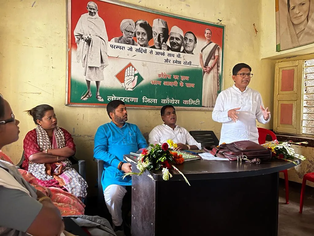 लोहरदगा जिला कांग्रेस कमेटी तत्वधान में लीडर डेवलपमेंट मिशन की आवश्यक बैठक कांग्रेस कार्यालय राजेंद्र भवन में कांग्रेस जिलाध्यक्ष सुखेर भगत के नेतृत्व में एवं लोहरदगा विधानसभा कॉर्डिनेटर दीपक ओझा एवं प्रदेश प्रतिनिधि नेसार अहमद की उपस्थिति में की गई,लोहरदगा विधानसभा कॉर्डिनेटर दीपक ओझा ने कहा लोहरदगा लोकसभा क्षेत्र में लीडर डेवलपमेंट मिशन का कार्य चल रहा है जिसके तहत संगठन को जिला स्तर, प्रखंड स्तर, एवं पंचायत स्तर पर संगठन को सशक्त करना है और आगामी 2024 लोकसभा चुनाव के पहले कांग्रेस पार्टी के वैसे कार्यकर्ताओं को जो कांग्रेस के लिए काफी सक्रिय एवं निष्ठावान है उनके अंदर नेतृत्व क्षमता को विकसित करके उन्हें संगठन में उचित पद देते हुए आगे बढ़ाया जाएगा प्रदेश प्रतिनिधि सह बिशुनपुर प्रभारी नेसार अहमद ने कहा कि यह काम जिला स्तर प्रखंड स्तर एवं पंचायत स्तर पर करना है जिसके तहत महिला कांग्रेस, युवा कांग्रेस, एनएसयूआई सेवादल, ओबीसी प्रकोष्ठ, एसटी प्रकोष्ठ एससी प्रकोष्ठ एवं अल्पसंख्यक प्रकोष्ठ के प्रखंड अध्यक्षों की नियुक्ति कर उनकी पूरी कमेटी बनाई जाएगी जिलाध्यक्ष सुखेर भगत ने कहा कि लीडरशिप डेवलपमेंट मिशन के कार्य में पूरी कांग्रेस पार्टी और कार्यकर्ता सक्रियता के साथ सहभागिता निभाएगी सभी प्रकोष्ठ के पदाधिकारी अपने कर्तव्य के निर्माण को लेकर सजग हैं और रिक्त पदों को भरते हुए सभी को जिम्मेदारी प्रदान की गई।