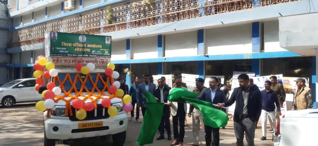 लोहरदगा।उपयुक्त डॉ वाघमारे प्रसाद कृष्ण द्वारा आज सड़क सुरक्षा हेतु आज मंगलवार को समाहरणालय परिसर से जागरूकता रथ को रवाना किया गया। इस जागरूकता रथ के जरिये आम लोगों के बीच सड़क सुरक्षा अंतर्गत नियमित रूप से दोपहिया वाहन चालकों को हेल्मेट पहनने, बाईक पर तीन सवारियों को एक साथ लेकर नहीं चलने, शराब पीकर वाहन का परिचालन नहीं करने, हमेशा यातायात नियमों का पालन करने समेत अन्य बिंदुओं पर जागरूक किया जाएगा। यह रथ सभी प्रखण्डों में अगले सात दिन घूमेगा। पहले दिन सदर प्रखण्ड में इस रथ के जरिये प्रचार किया गया।