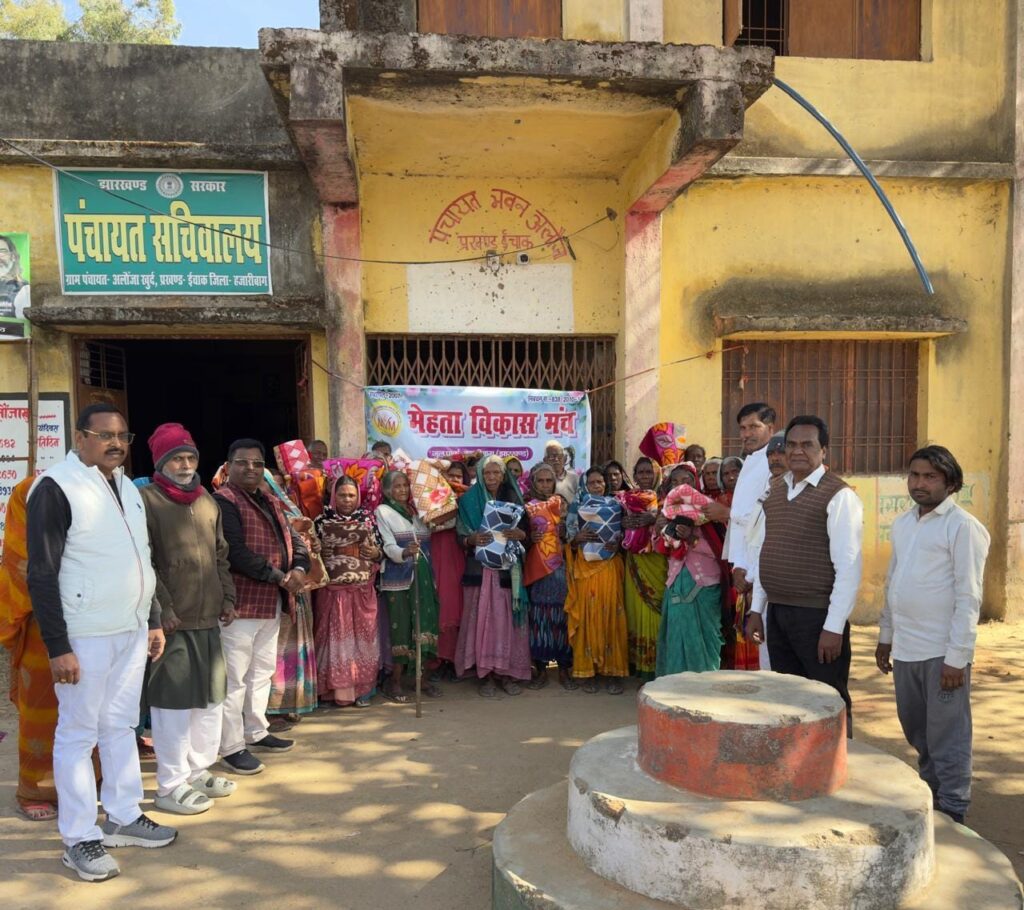 हजारीबाग: भीषण शीतलहरी और कड़ाके की ठंड को देखते हुए मेहता विकास मंच, हजारीबाग द्वारा जरूरतमंदों के बीच कंबल वितरण का कार्य लगातार जारी है। मंच की ओर से दिसंबर 2025 से जिले के चार प्रखंड—इचाक, पदमा, सदर एवं कटकमसांडी—के चयनित पंचायतों में गरीब, वृद्ध, असहाय एवं दिव्यांग लोगों को कंबल उपलब्ध कराए जा रहे हैं।