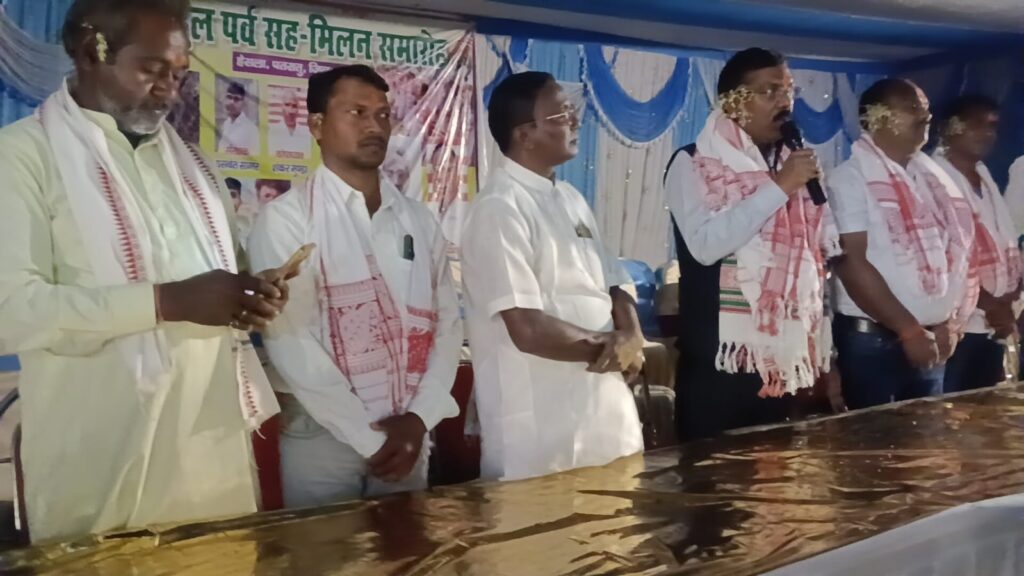 हेसला में सरहुल पर्व के मौके पर पहुंचे विधायक रोशन लाल चौधरी।