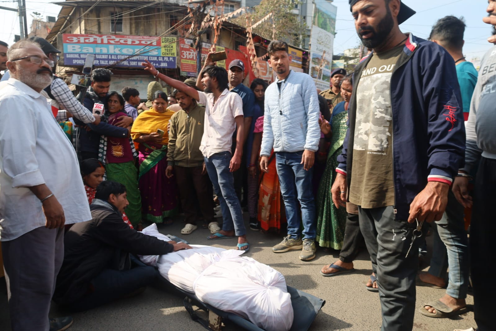 पोस्टमार्टम के बाद शव परिजनों को सौंप दिया गया। इसके बाद परिजन और समर्थक लालपुर चौक पहुंचे और शव को सड़क पर रखकर प्रदर्शन शुरू कर दिया। चौक जाम होने से चारों ओर वाहनों की लंबी कतार लग गई।