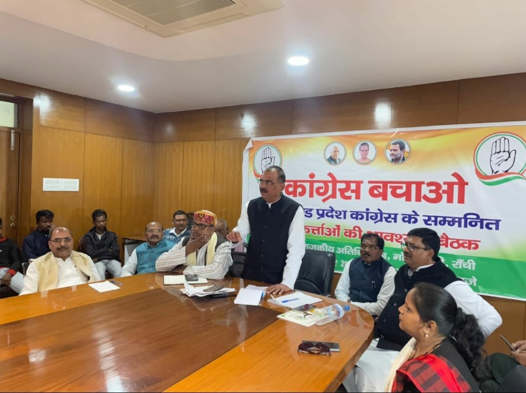झारखंड प्रदेश कांग्रेस के नवनियुक्त पदाधिकारियों एवं वरीष्ठ कांग्रेस नेताओं ने सोमवार को रांची स्थित अतिथिशाला में कांग्रेस बचाओ बैनर तले बैठक किया। बैठक में उपस्थित सभी पदाधिकारियों ने प्रदेश अध्यक्ष राजेश ठाकुर पर पार्टी को कमजोर करने का आरोप लगाते हुए केंद्रीय अध्यक्ष से अविलंब हटाने की मांग की।
