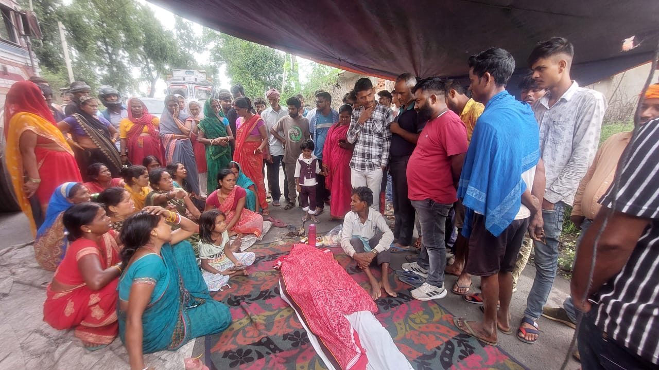 शव को सड़क पर रखकर मृतक के परिजनों के साथ ग्रामीणों ने कोल वाहनों का परिचालन कराया ठप