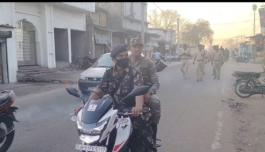 फ्लैग-मार्च में इंस्पेक्टर सतेंद्र कुमार,पतरातु थाना प्रभारी शिवलाल गुप्ता, भुरकुंडा ओपी प्रभारी निर्भय गुप्ता, बरकाकाना प्रभारी उमाशंकर वर्मा,बासल थाना प्रभारी कैलाश प्रसाद,भदानीनगर ओपी प्रभारी ब्राहमत कुमार मौजूद थे कहा क्षेत्र के सभी लोग आपसी भाईचारे एवं सौहार्दपूर्ण माहौल में पर्व को मनाए। साथ ही कहीं भी किसी प्रकार का व्यवधान हो या किसी प्रकार की कोई घटना हो तो इसकी सूचना पुलिस प्रशाशन को दें। कहा एक सप्ताह के अंदर चार त्यौहार है। सभी लोग अपने पर्व त्यौहार को अच्छे से मनाए और कानून को हाथ में न ले। खासकर किसी प्रकार का कोई भी अफवाह सोशल मीडिया या और कहीं फैलाने का कोशिश करता है तो अफवाहों में न आकर शरारती तत्वों की जानकारी त्वरित पुलिस प्रशाशन को दें।
