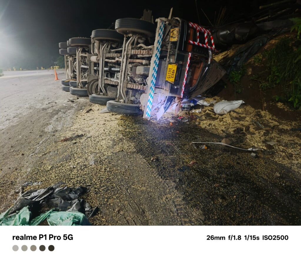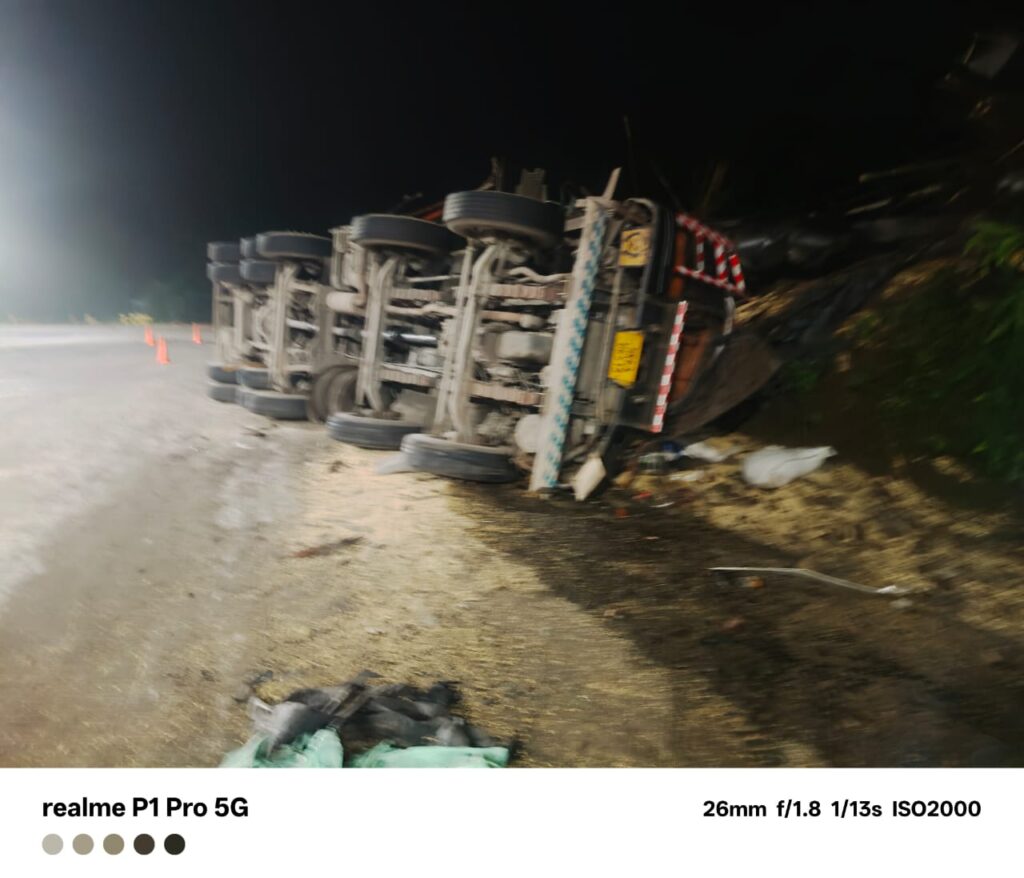 जानकारी अनुसार आज बीते रात चुटूपालू घाटी गड़के मोड़ में तेज रफ्तार ट्रक अनियंत्रित होकर पलट गया,हादसे में ट्रक पर सवार ड्राइवर और खलासी दोनों की की घटनास्थल पर ही मौत हो गई। जानकारी के अनुसार ओड़िशा के कटक से 14 चक्का ट्रक पर जयलक्ष्मी एग्रो फूड प्राइवेट लिमिटेड कंपनी का चावल और दाल लोड कर गाज़ियाबाद (यूपी) ले जाया जा रहा था। इस क्रम में रांची से रामगढ़ आता हुआ ट्रक गड़के मोड़ पर अनिल होकर पलट गया। दुर्घटना में ड्राइवर और खलासी की घटनास्थल पर ही दर्दनाक मौत हो गई। मामले की सूचना पर पहुंची रामगढ़ पुलिस ने शव को ट्रक से निकाला और पोस्टमार्टम के लिए रामगढ़ सदर अस्पताल भिजवाया।