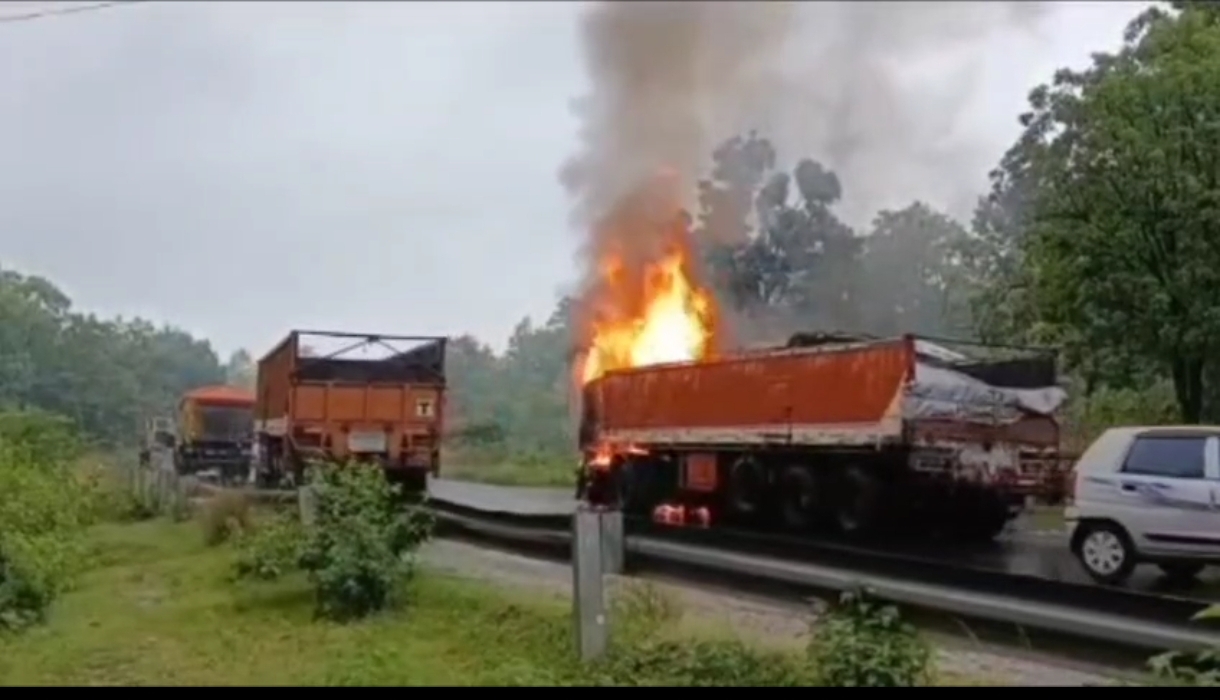 राह चलते राहगीर और वाहन चालक का आवागमन होता रहा लेकिन किसी ने मदद नहीं की। मौके पर पुलिस और दमकल की टीम घटनास्थल पहुंचकर आग पर काबू पाया गया, विश्वसनिय सूत्रों ने बताया कि गाड़ी में खाध समाग्री और कोयला लोड था।