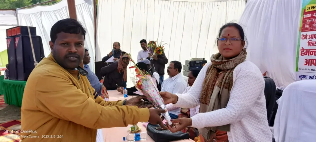 इधर राज्य सरकार की ओर ग्रामीण क्षेत्रों को लोगों को सरकार आपके द्वार कार्यक्रम के माध्यम से सरकार के विभिन्न योजनाओं से जोड़कर आच्छादित करने हेतु सराहनीय कार्य किया जा रहा है उल्लेखनीय है कि सरकार आपके द्वार कार्यक्रम में उपस्थित अतिथियों के द्वारा विभिन्न प्रकार की योजनाओं से स्थानीय ग्रामीणों को जागरुक करते हुए सरकार के महत्वाकांक्षी योजनाओं से लाभान्वित कराया गया जिसके बाद मनरेगा योजना लाभुकों के बीच कई प्रजातियों के पेड़ पौधे वितरण किया गया और अबूआ आवास के लिए लगभग 700 आवेदन लिया गया