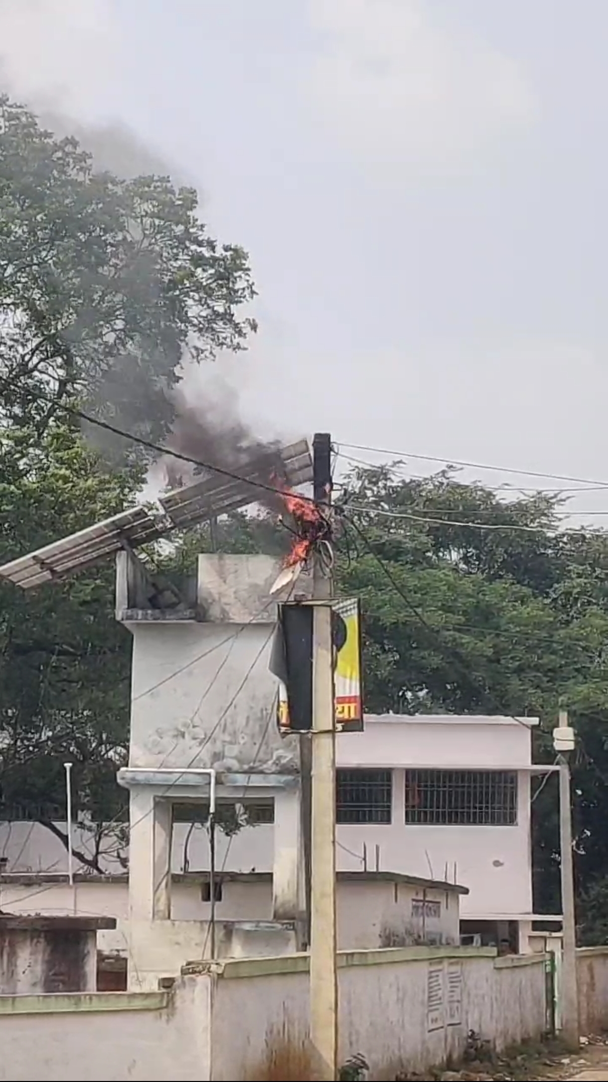 डांगापाड़ा गांव बीच सड़क पर जलने लगा बिजली का खंभा, इधर से उधर भागने लगे लोग