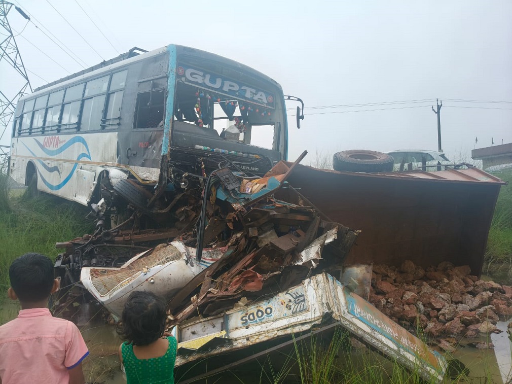 लोहरदगा चंदवा मुख्य पथ पर बीते रात्रि करीब 1:00 बजे कैमो के समीप गुप्ता यात्री बस और बाक्साइट ट्रक में जोरदार भिड़ंत, सूत्रों के मुताबिक यात्री बस में सवार दर्जनों यात्री को लगी है गहरी चोट, चौकीदार समसुल अंसारी और स्थानीय लोगों के सहयोग से सभी घायलों को इलाज हेतु पहुंचाया गया सदर अस्पताल लोहरदगा।