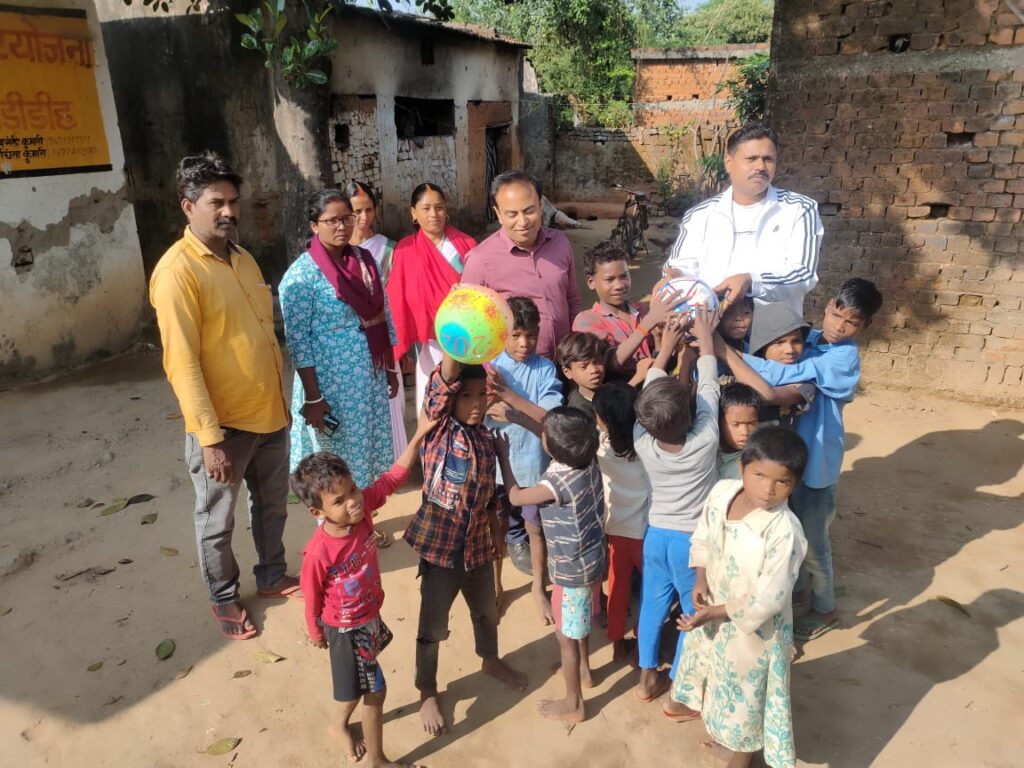 बिरहोर कॉलोनी में समाजसेवी जयप्रकाश सिंह ननकी ने खेल सामग्री का वितरण किया।