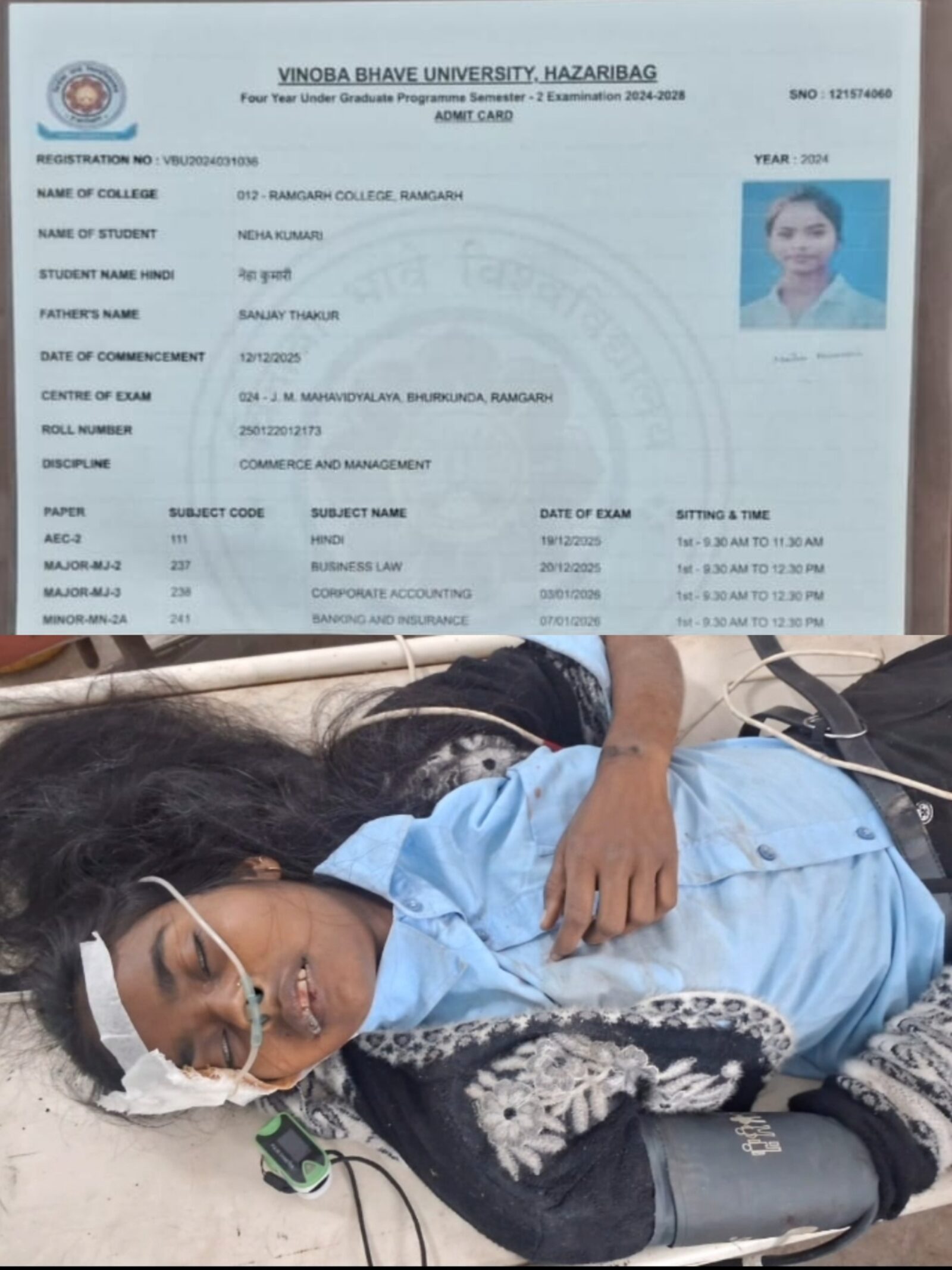 दुर्घटना हुई छात्रा का घर का पता रामगढ़ कोठार है सूचना मिलते ही नेहा कुमारी के माता पिता रामगढ़ सदर अस्पताल पहुंच गए और चीख-पुकार मच गया है।